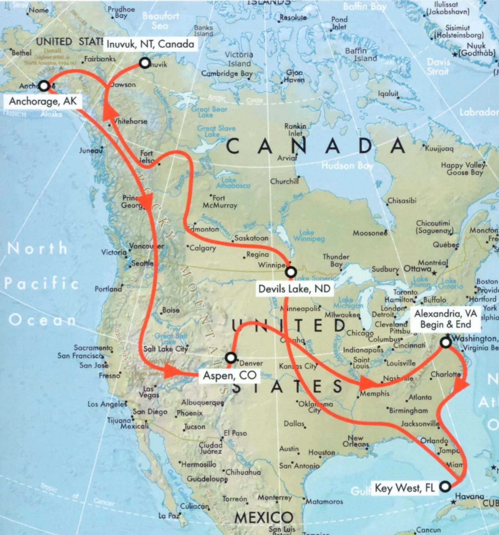 In 2015, at age 57, I took a three-month motorcycle journey across the North American continent, largely alone. I flew my wife out to join me at four stops. Here is an approximate map of the route.
